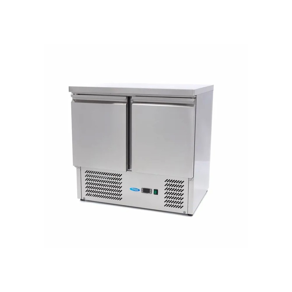 | Šio nerūdijančio plieno stalo talpa 179L, turi dvejas dureles. Už kiekvienų durų yra reguliuojamo aukščio grotelės. Šiame šaldomame stale švieži ingredientai išlieka atšaldyti, švieži ir visa yra po ranka būtent ten, kur jų reikia. Tiekėjas Maxima. |