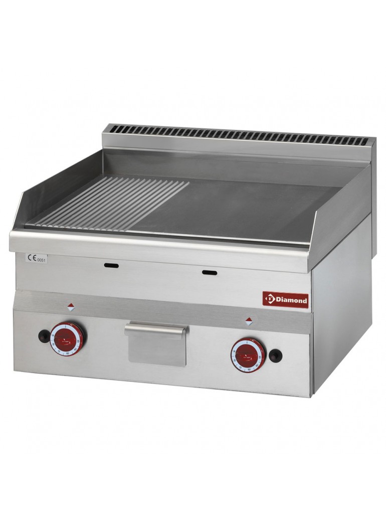 Diamond dujinė kepimo plokštuma, lygi / rifliuota, chromuota Pro 600